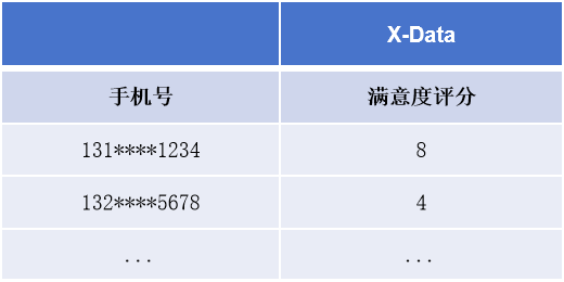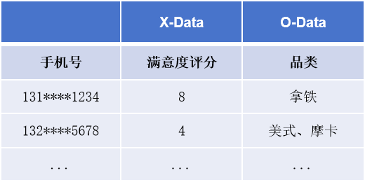 由于O-Data(运营数据)存在于订单系统中,出于数据安全和系统稳定性的考虑,负责满意度调研的部门很难协调将这些数据导出;• 问卷调研通常是对全量数据的10%进行抽样,而应答率可能仅为10%。因此,实际上X-Data(体验数据)只有O-Data的1%,导致统计结论非常不稳健;• 客户在过去一段时间内可能多次购买产品(例如,上述手机号为132****5678的客户购买了美式和摩卡两种类别的咖啡),而满意度调查的数据只有一次。因此,即使合并了数据,也无法推测客户给低分究竟是不满意哪款产品;