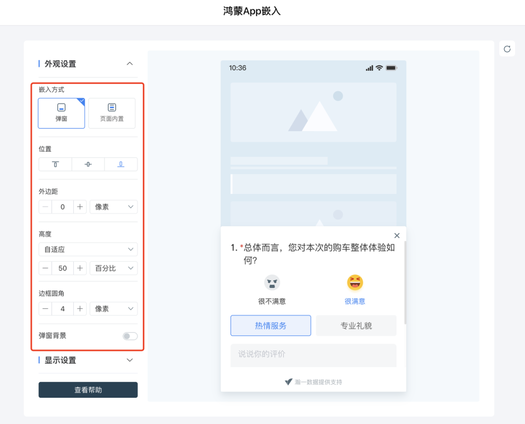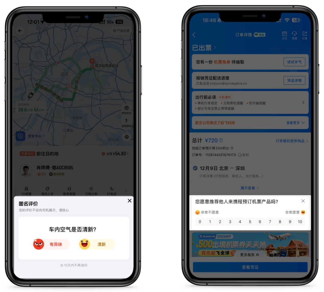 简而言之,接入体验家CEM SDK后,应用即可快速实现类似电商订单完成后的用户反馈功能,并能够根据业务需求随时调整问卷内容,持续优化客户体验。