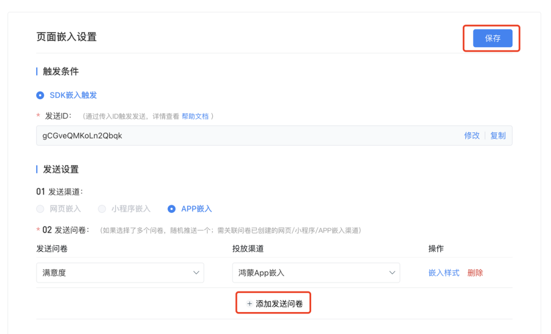 SDK采用“一次嵌入埋点,后续全程可配”的设计。初始集成后,所有问卷的启用、停用、内容更换等操作,均可在平台自主完成,无需再次投入研发资源,大幅降低运维成本,灵活响应调研需求。