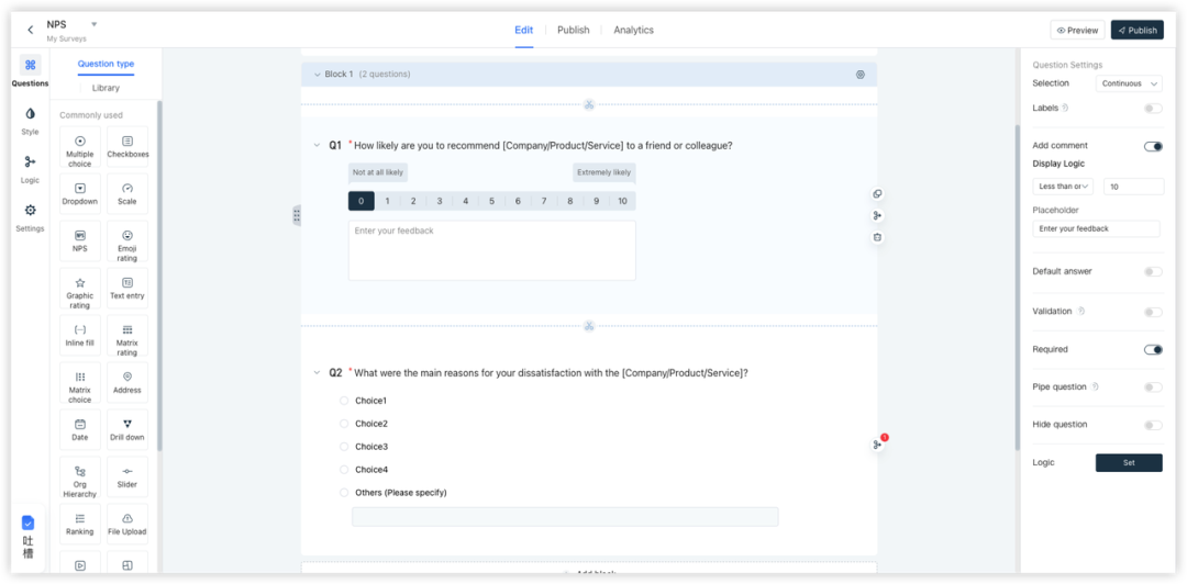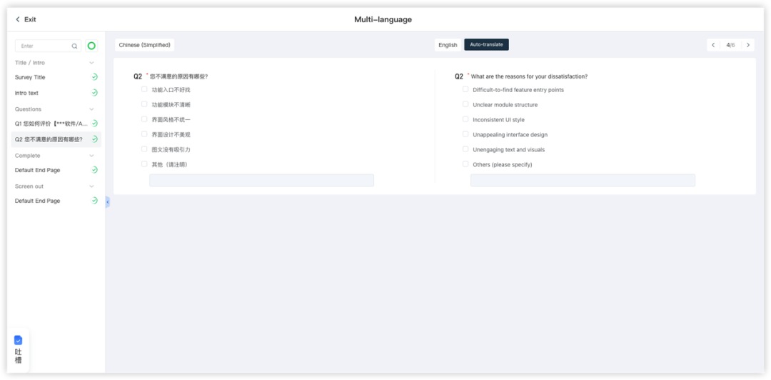 ▲ 全英文问卷编辑页